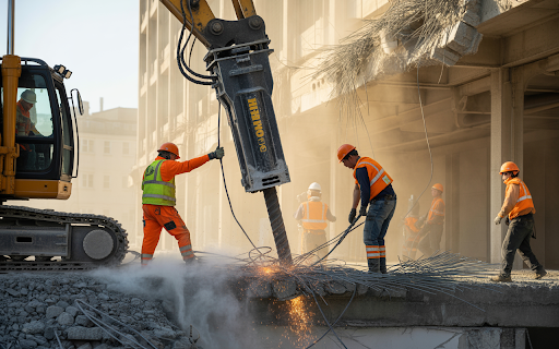 The equipment required for large building demolition goes well beyond the excavators and loaders that handle smaller projects. Multi story buildings often require high reach excavators with extended booms that can reach upper floors from ground level. Large hydraulic breakers mounted on substantial excavators provide the force needed to break thick reinforced concrete. Specialized attachments including concrete crushers, shears for cutting structural steel, and grapples for sorting and loading materials expand equipment capability for different demolition tasks.
